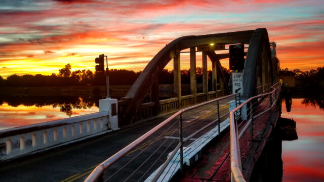 Stewart took the job as bridge tender five years ago because she needed the work. Whether she knew that it would draw her into the world of photography seems unclear. Stewart started posting pictures on the Delta News Facebook group. She works the early shift, and sees the sunrise from her perch over the river. She wants other people to share what she feels fortunate to see — the ever-changing patterns which shift with the merest wisp of wind; the birds; the colors. She pauses, as if unable to find words enough to explain. But she does not need words; she has her lens.
